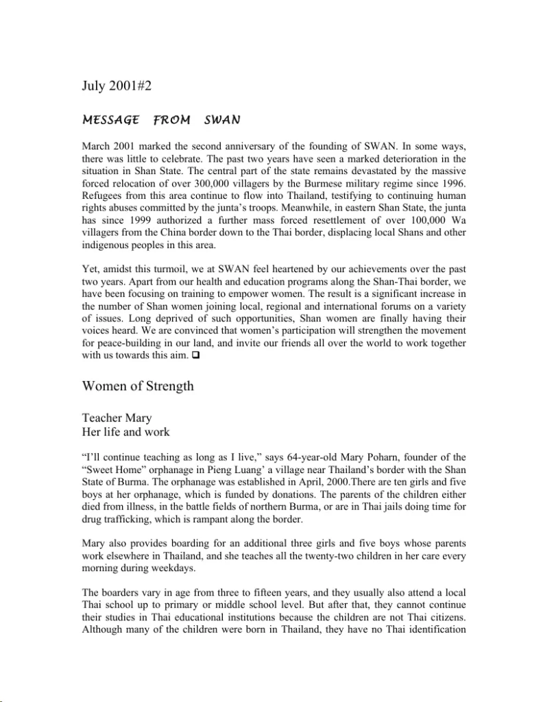 Shan Women's Action Network (SWAN) © 2026. All Rights Reserved